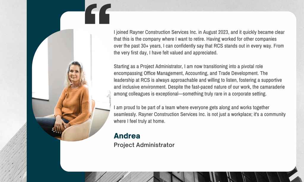 Andrea comes from a background of over 30 years in construction, including residential, agricultural, mulit-family and commercial construction, as well as all levels of administrative and/or leadership duties for each. With decades of industry knowledge and background, Andrea takes great pride in the work she delivers to clients and colleagues. She is highly dedicated to always ensuring the highest level of customer and client service. Outside of work, Andrea loves a good road trip to anywhere, camping as much as possible and gourmet cooking for her family and friends.